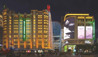 地处“中华商业第一街”南京路步行街路口的一百老楼,其前身是著名四大百货公司之一的大新公司,开业于1936年,曾见证了旧上海最鼎盛期的繁华生活。如今,这幢近代优秀保护建筑,携原一百新楼和东楼(东方商厦南京东路店)一起三楼合体,横跨六合路,以近12万平方米的总面积,全新规划了“大戏院、梧桐、弄堂、夜上海、都市前沿、潮货颜仓、探索发现、慢生活”八大主题区,经典的上海格调与时代潮流相互融合。