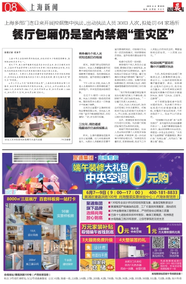 6月3日至6日是“控烟集中执法周”,上海各级控烟执法部门对餐饮、娱乐等重点控烟场所开展突击检查。这几天,全市出动执法人员3083人次,检查场所4984户次,拟处罚场所64家,拟处罚金额111500元,拟处罚个人32例,拟处罚金额3250元。