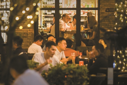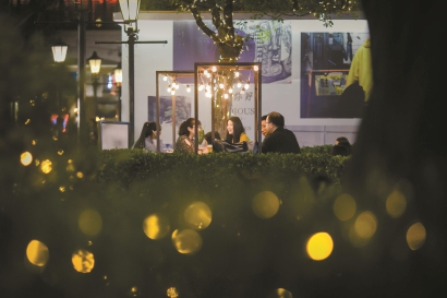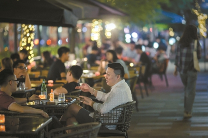 “我很喜欢新天地的夜空间,但夜生活的体验一度并不美妙。”戴维来中国已经10多年了,现在在上海的一所学校教书,他喜欢称自己是上海当地人,“本地人现在还谈不上,因为没有房子”。在新天地升级焕新前,戴维坦言他并不是特别爱来这里游荡。“北里这里原先是一家大型连锁快餐店,沿街那儿原先也是个毫无特色的餐饮店,曾经都是给游客一次性消费的。像我这样在上海长期生活的人,会更喜欢新天地西面的758等地方。”不过他说,如今消费场所的更替,有了很酷的“夜体验”,为夜猫子们提供了精彩的夜生活。