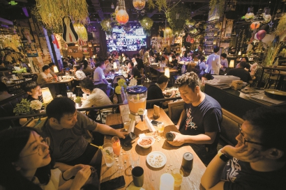 “在我的记忆里,很少有大商场灯火通明营业到很晚的,来来往往晚上哪哪都是人的场景。”在闵涛看来,此前,夜生活,要么就是没有生活,要么就是疯狂折腾。“但现在,我觉得来这里喝一杯小酒,听一听音乐,自己的夜生活,很有感觉,也很舒服。”