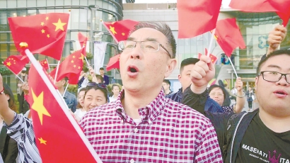 男子花剑世界冠军叶冲和高举国旗的上海绿地申花队球迷们一同加入快闪活动。“感动中国十大人物”易解放、全国劳动模范殷仁俊、犹太难民后裔沙拉·伊马斯等相继现身高歌。活动高潮迭起,大家聚集在白玉兰广场中央,挥舞着手中的国旗,《我和我的祖国》歌声响彻北外滩上空。