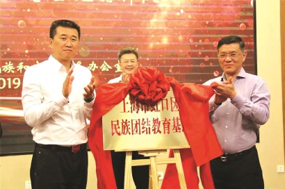 姜斌处长和丁伟强书记为虹口第二批区民族团结教育基地——复兴高级中学揭牌。自2002年开始该校接受西藏内地高中班学生,到去年为止,共有270名西藏班学生从学校毕业。扩招后西藏生高考录取率近100%,“985”、“211”高校录取率在80%以上。
