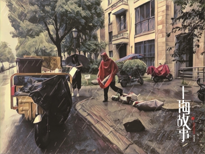 6月18日早,上海入梅第一场暴雨,宝山顾村东方帕提欧小区垃圾分类成果经受考验。各楼栋门口原来放垃圾桶的地方,又被居民们堆起了大包小包的垃圾,而暴雨随后将这些乱堆放的细碎垃圾冲开,现场一片狼藉。