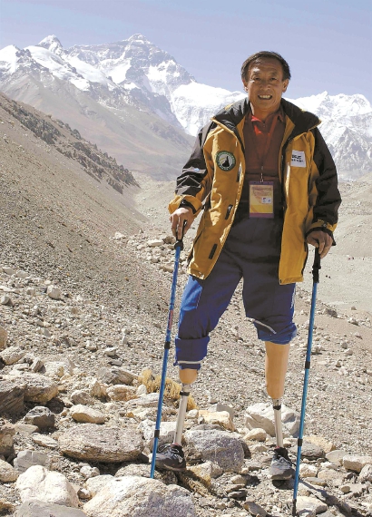 从那时起,一个穿戴假肢的人开始用半生的精力去征服世界最高峰。为了完成自己的目标,夏伯渝坚持训练直至残肢受损,甚至不得不进行第二次截肢手术;他5次向珠峰进发,前4次均受自然条件所限被迫下撤,尤其是第4次。那是在2016年,当时他距离最后的终点只有94米了,但他还是没有完成对世界最高峰的征服。那或许是他一生中最难做出的决定,因为回到北京后他就被医生下了禁令:永远不能再进行极限运动。