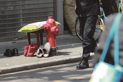 “伐晓得呀,我问问看噢!”店里埋头吃着午饭的平头爷叔跳起来,跑到隔壁的服装店里询问,店家之间就像老邻居一样熟稔。