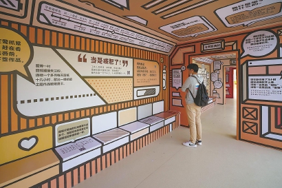 在这个二次元的“车厢内”记录的其实都是新虹街道普通老百姓、志愿者、白领们的“凡人金句”。“赶在看不清东西前多留些作品”,“剪纸孃孃”朱阿姨在疫情期间用一个月剪出12幅抗疫剪纸,感动了很多人。来来往往的市民纷纷掏出手机扫描“车厢”上的二维码,想多读些朱阿姨的故事。