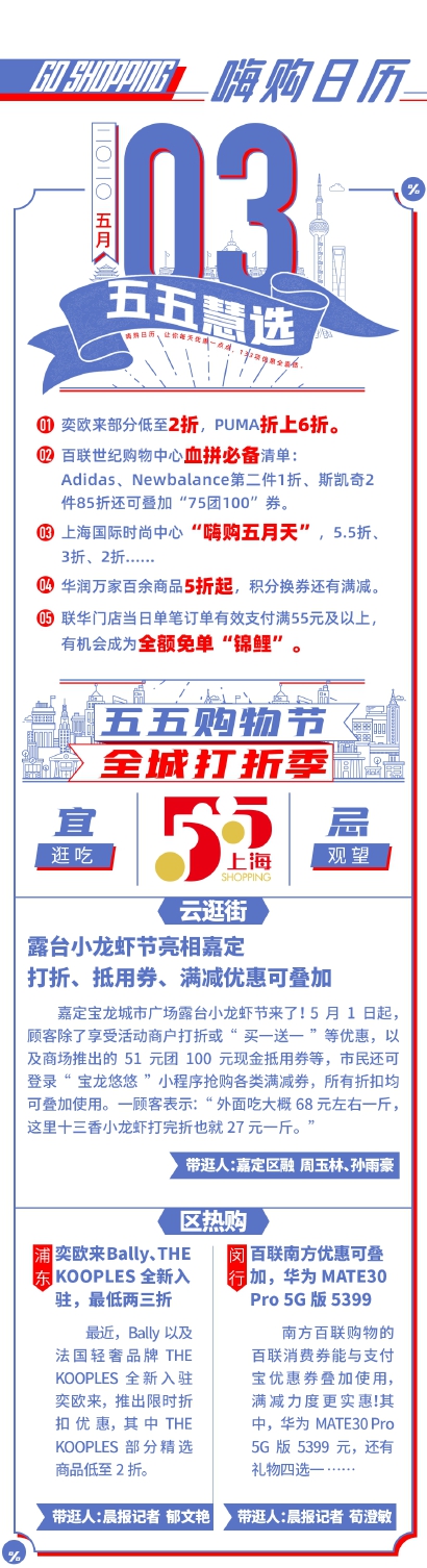 温馨提示:5月1日-5月5日开放时间为9:30-21:30,建议顾客避开下午1点到4点的客流高峰。