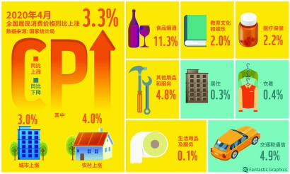 国家统计局12日发布数据,4月份,全国居民消费价格指数(CPI)同比上涨3.3%,涨幅比上月回落1个百分点。专家分析,2月份以来,CPI同比涨幅持续回落,随着疫情影响减弱、生产生活秩序进一步恢复,全年CPI同比涨幅将呈现“前高后低”走势。