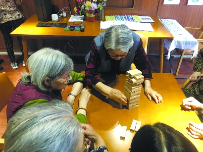 83岁的王奶奶一直盼着社区为老服务中心早点开,“一个人独居在家十分寂寞,在这里终于看到老姐妹了,一起聊聊天,折纸、做操、吃点心、这里环境很好,社工们也照顾得好。”
