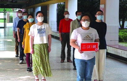 演练时,老师、后勤、保安严格按照上级部门进校、在校活动等要求操作。如按照指定路线行走,前后距离始终保持一米及一米以上;校门口体温检测,班级早、中两次体温检测;进教室前规范洗手;突发情况应急处置;用餐前规范摘口罩,用餐后规范戴口罩;排队放学保持安全距离,家长接到孩子立即离开等,确保开学后师生的生命健康。