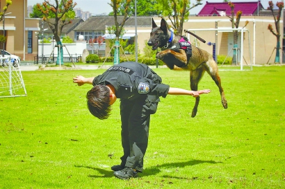 一位民警可以训练多只警犬,但一只警犬只能有一个主人——训导员一声令下,再凶猛的烈犬都能俯首帖耳,这便是关键所在。