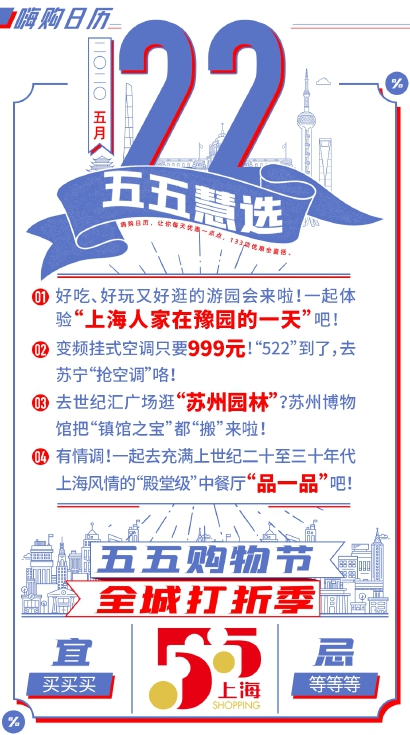 早上到豫园的南翔馒头店吃早餐,到湖心亭喝杯早茶,走走九曲桥和豫园花园,在老字号集市上尽情买买买,下午去摆满了老物件的“重回屋里厢——时光里的上海人家”摄影空间拍照打卡,晚上去绿波廊或者上海老饭店品一品地道的上海菜后,华灯初上的豫园,热闹非凡的夜间演艺活动和夜间集市开始闪亮登场……本次游园会将持续至6月18日,将通过一条“上海人家在豫园的一天”主题旅游路线,串联起众多老字号旗舰店、快闪店、花车集市、品牌展览、演出等活动内容。
