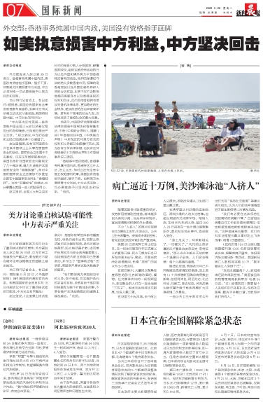 《纽约时报》24日头版以整版篇幅刊登1000名新冠病毒死者名单,提醒疫情严重性。该报国内版主编马斯·莱西说,美国新冠病亡人数即将突破10万,“数字着实让人惊掉下巴”。