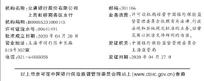 下列机构经中国银行保险监督管理委员会上海监管局批准,颁发《中华人民共和国金融许可证》,并获准开业,现予以公告。