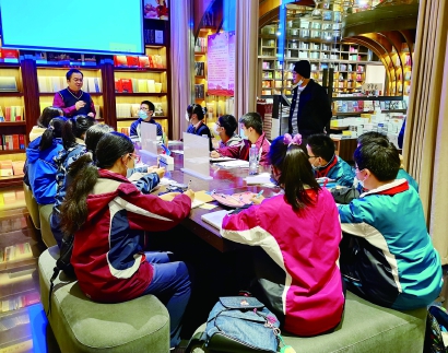 在网络时代兴起的趋势下,人们的阅读习惯、消费习惯发生了改变,实体书店纷纷寻求转型升级,不单单作为一个购书的场所,而是一个综合性的文化空间来经营。富有新意和特色的装潢、别出心裁的图书陈列、书店里高颜值的咖啡座和文创产品吸引了越来越多的人前往书店。本次社会考察,学生走进钟书阁,聚焦现代人阅读方式和需求,考察实体书店多元化升级发展。
