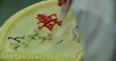 “外国人裱花没有龙凤、松鹤,也没有寿桃。我们是用外国的技艺来创作符合中国人审美的图案。”陈凤平说。