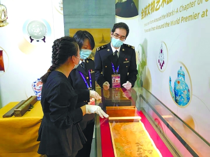 晨报讯 在今年11月举办的第三届进博会上,首次展出了5件中国古画,在国家有关部门和上海市的通力合作下,顺利完成了销售、清关、结算等一系列手续,并于12月9日完成最后的交接,5件中国文物艺术品首次通过进博会实现了回流。