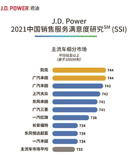 作为汽车市场的高端主流合资品牌,别克在扎根中国的20多年时间中始终将消费者放在首位,不断提升服务能力,为用户带来与时俱进的服务体验。尤其是近年来,聚焦消费者全生命周期的用车需求,别克以用户体验为中心,以智能科技升级服务水平,并不断引领国内汽车销售服务的新潮流。就在最近,国际专业消费者调研机构J.D.Power(君迪)公布了2021年度中国销售服务满意度研究(SSI)结果。上汽通用汽车别克品牌以744分的成绩位居主流车品牌之首,这也是继2020年荣膺这一佳绩之后,别克品牌蝉联该细分市场排名冠军。服务基础是别克品牌“向上”之根基
