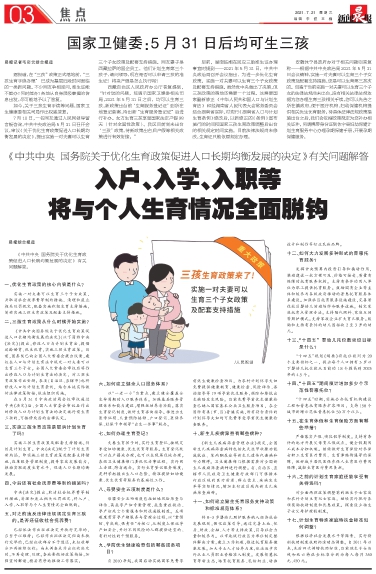 入户、入学、入职等将与个人生育情况全面脱钩