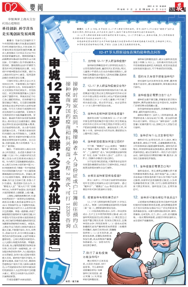 申城12至17岁人群,今起分批“苗苗苗”
