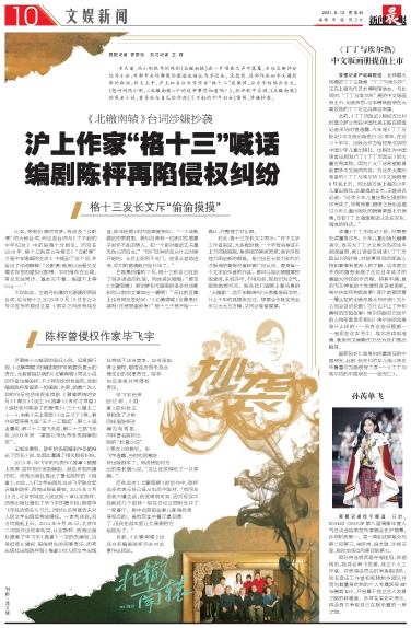 沪上作家“格十三”喊话 编剧陈枰再陷侵权纠纷