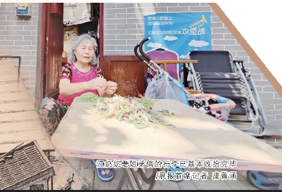 临近中午,73岁的江奶奶坐在树荫下的矮凳择菜,花猫在她腿边摩挲。再过三天,她就要搬离住了大半生的地方。