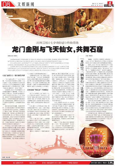 记者获悉,在这个节目的编排中,节目组确实翻查了大量典籍,不仅深入了解龙门石窟文化,也对其中的造像进行了研究。比如在节目中抢占“C位”的金刚,就经过了系统的造型梳理和艺术化的加工,“所有的形象都来源于最经典的龙门石窟金刚造型,舞蹈动作在设计时不仅要形似还要神似”,总导演路红莉如是说。
