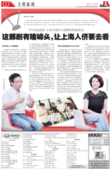 上海大学上海电影学院张斌教授此前专门做过方言剧的研究。他告诉记者:“一方面,《夺子战争》这部剧在当年播出时就受到不少观众的喜欢,在吴语地区有一定的影响力,对老观众来说,他们一代人的记忆就在这部电视剧当中,现在重播唤起了老观众怀旧的情绪,他们愿意看一下自己年轻时或者小时候看过的非常有意思的电视剧。另一方面,对于年轻观众来说,可能也有陌生感和新鲜感,因为沪语电视剧作品比较少,除了在一些电视节目当中偶尔有戏剧化的表演片段之外,这些年真正达到沪语电视剧层面的片子也确实没有。”