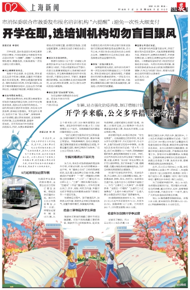 开学在即,公交线上莘莘学子又将多起来。连日来,上海久事公交巴士公司的相关准备工作已经悄然展开。各车队尤其强化了对营运车辆、站点的消毒清洁工作。工作人员加大了对乘客上车佩戴口罩、规范佩戴口罩的劝导力度,对经劝导后拒不规范佩戴口罩的乘客,驾驶员可以拒绝其乘车。