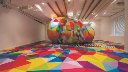 长达6米的《爆炸头》装置作品、美轮美奂的《万花筒隧道》、让观众失去时空概念的沉浸式空间《宇宙连廊》……“涂鸦艺术”让外滩老建筑焕发潮流活力。