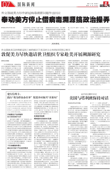 敦促美方尽快邀请世卫组织专家赴美开展溯源研究