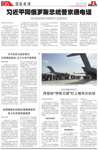 中方向世卫组织提出对美德堡基地、北卡大学开展调查