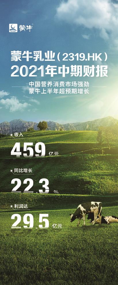 8月25日,蒙牛乳业(2319.HK)发布2021年中期财报。今年上半年,蒙牛收入达459亿元,同比增长22.3%,利润达29.5亿元。作为乳品行业领军企业,蒙牛用超预期的高增长,实现“十四五”的良好开局。