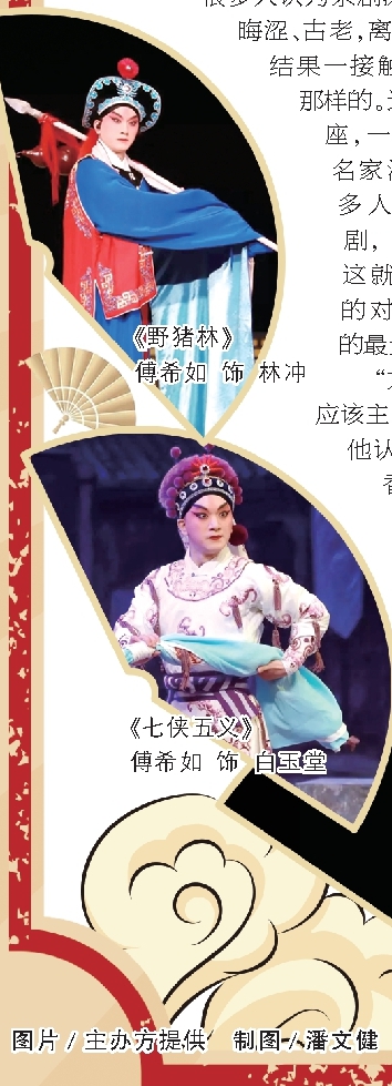 傅希如借助歌手刘欢的一句话表达对京剧的信心:京剧是在另一个时代就已经成为经典的剧种,它不会因为有更多人喜欢而变得流行,也不会因为缺少人关注而没落,它已成为永恒。