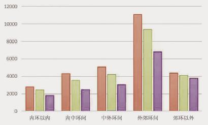 从均价环比来看,各环线均出现下跌。8月外环以内成交量的环比和同比下降显著,且越靠近市中心,同比下降越显著。内环以内的成交量绝对值已下降至不足2000套,几乎回到2018年的水平。从占比来看,外郊环间占比下降了2个百分点,郊环以外占比增加了3个百分点;从均价同比来看,外环以内同比依然保持正增长,外环以外则出现负增长,但内环以内同比增速收窄显著。从均价环比来看,各环线均出现下降。