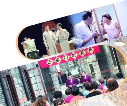 “衣”片段中服饰的变化则生动反映了上海市民生活的细节与变化。从演员讨论的改革开放后女子旗袍的样式翻新,到关于“华挺绸、美丽绸、涤粘绸、涤绢绸”与一步裙、迷你裙等当下潮流服饰的幽默段子,一部服装史就是上海人民生活变化发展的侧影;而cosp lay等潮流文化元素与传统上海独脚戏、石库门背景形成冲击碰撞,这种富有张力的碰撞也与上海活力、多元、包容的城市气质不谋而合。