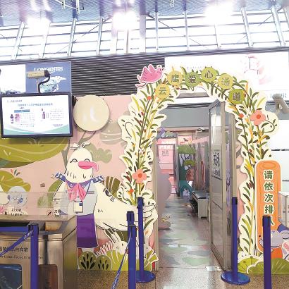 为更好地保障大客流的高效通行,浦东机场T1国内安检“云鹰爱心通道”正式开通。通道内配备了儿童座椅、医药箱等,为老年旅客、儿童旅客和家庭出行旅客提供更便捷舒适的过检环境。
