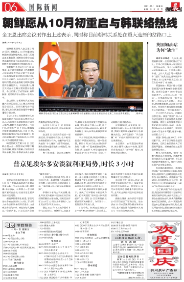朝鲜最高领导人金正恩9月29日说,朝鲜愿从10月初重启与韩国的通信联络热线。这是几天前金正恩的胞妹、朝鲜劳动党中央委员会副部长金与正发表谈话以来,朝鲜方面再度释放对韩缓和信号。