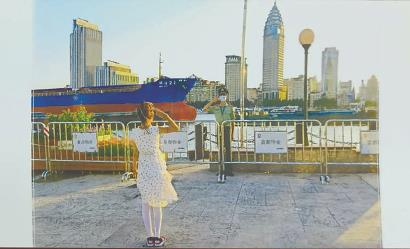 其中一张照片显示,阵阵江风中,一名穿白色裙子的小女孩隔着栅栏向哨兵敬礼,这让官兵们心里感到阵阵温暖。