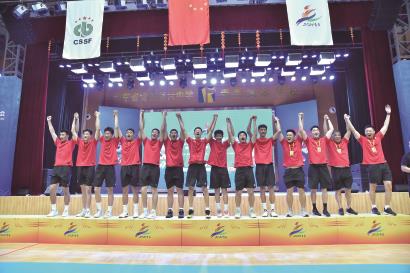 在小组赛第三场就遭遇劲敌东道主山东队,在强大的山东队和山东的球迷呐喊声中,顶住压力,不畏强敌。淘汰赛开始后,我们的排球队教练组和运动员在每场比赛前反复观看对手录像,及时排兵布阵,从而在比赛中充分发挥长处;其间,自由防守队员张明翔为了救一个球,人扑出广告牌,这种每球必争的精神鼓舞着队员们努力拼搏。