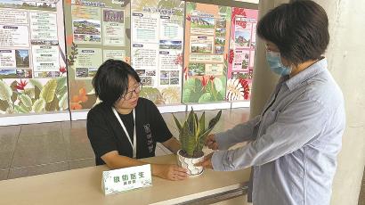 兰科专家倪子轶也接待了不少“病患”,看来养国兰和洋兰的市民不少。一位市民替家养的兰花问诊,他告诉专家,这盆兰花叶面卷曲,正面有黄斑,背面有黑点,根部黄掉以后叶子还会断掉;另一位市民说,养的蝴蝶兰才2天花就谢了,叶子也发黄,求助专家。倪子轶耐心回复,并建议如果有病虫害,可以挂“病虫害防治科”,找专家王一椒。