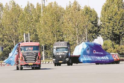 晨报讯 昨日上午,搭载着第四届进博会首批展品的数辆卡车驶入国家会展中心(上海),它们分别是来自日本天田公司的折弯机、德国永恒力公司的前移式叉车和电动牵引车等。