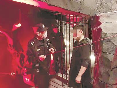 在一家“沉浸式体验馆”内,民警检查完公共区域后,又对每间“密室”房门的“一键启闭”功能,烟感报警、自动喷淋装置,疏散通道的逃生标识是否清晰等进行仔细检查。