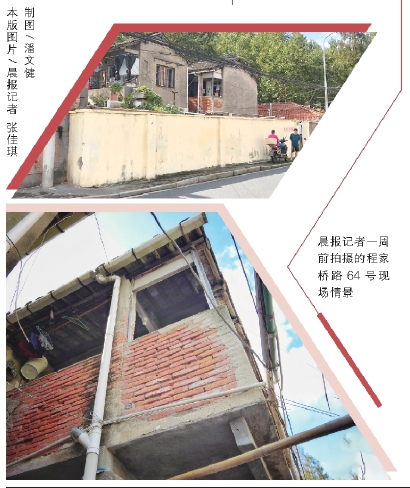 闵行区虹桥镇和长宁区程家桥街道交界附近,有一个“程家桥路64号”,院子里有三栋灰色的两层楼,以及一栋红瓦屋顶的平房,租住着10来户居民,存在着私拉电线等诸多安全隐患,违建也很多。闵行区虹桥镇认为,“程家桥路64号”虽在该镇域内,但不是他们的,没法管;长宁区程家桥街道则表示,虽然管理这里的物业公司是“上海新长宁集团新程物业有限公司”,但街道与“程家桥路64号”没有任何关系。10月21日,新闻晨报“老叶较真”就此事刊发报道《“程家桥路64号”脏乱差 闵行和长宁却都说管不了》。