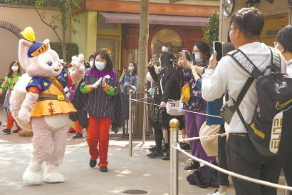 昨天上午10点,上海迪士尼乐园和迪士尼小镇在短暂关闭2天后恢复开放,游客们热情欢迎小狐狸玲娜贝儿回归。