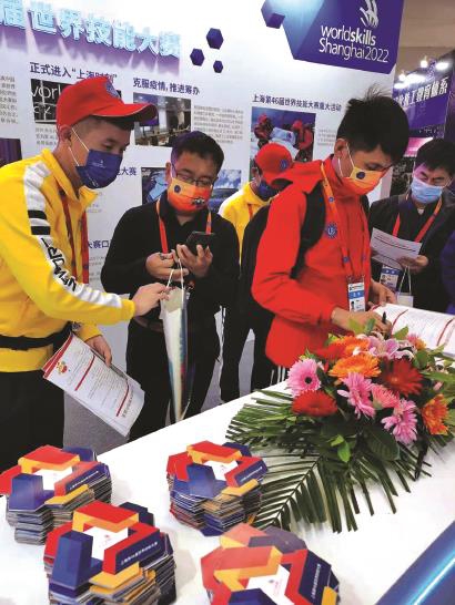 除了展台外,现场还设有MR鲁班锁体验与花艺展示。“精细木工和花艺都是世界技能大赛的比赛项目,希望能够通过展板的展示和技能体验,让大家认识到技能人才的重要作用。”