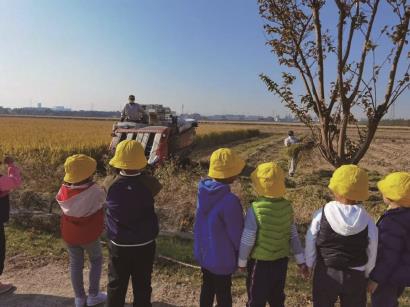 大班的孩子们对稻谷有着浓浓的兴趣。他们激烈地讨论:稻谷是如何变成大米的?活动当天,他们来到外岗泉泾基地,参观了“收割稻谷、打稻谷、轧米”的过程。“谁知盘中餐,粒粒皆辛苦。”孩子们不禁惊叹,原来每一碗米饭都来之不易!