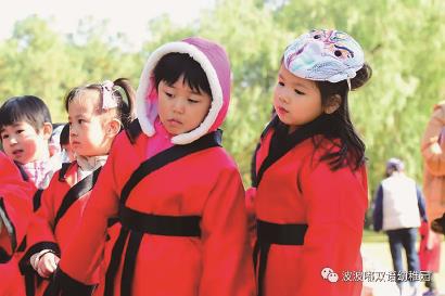 ■传统文化初体验:周三的早上有一群穿着红色汉服的宝贝们,他们聚在一起和师傅体验学习我们的传统文化,投壶游戏、礼仪之交、和爸爸妈妈一起画传统面具。中华民族优秀的传统文化不能遗忘,感受传统的魅力宝贝们乐在其中。