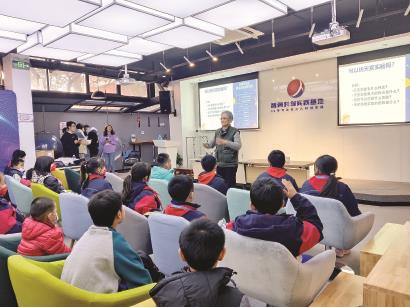 “地面如何仿天宫失重的环境?想想自己有没有失重过?”“地面浮力能消失吗?地面如何仿造太空浮力现象?”在一个多小时的讲座中,72岁的吴姥姥蹦跳、旋转、举水桶,把复杂的重力现象生动地讲给孩子们听。水桶、转椅、车轮、盛着水和乒乓球的透明杯子……讲座现场的所有实验、取之于生活的实验器材,孩子们在家都可就地取材,模仿实验。