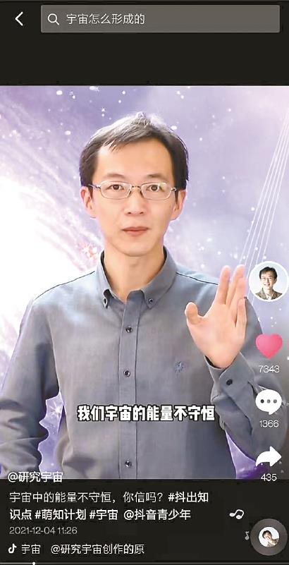 在这位开门大弟子的介绍下,今年11月30日,王一在自己的抖音账号“研究宇宙”上发布了第一条视频,获得1.9万点赞。他运用此前录制慕课的器材、环境、技术,在业余时间自己搞定全部流程。至今在抖音、快手平台拥有二十余万粉丝。